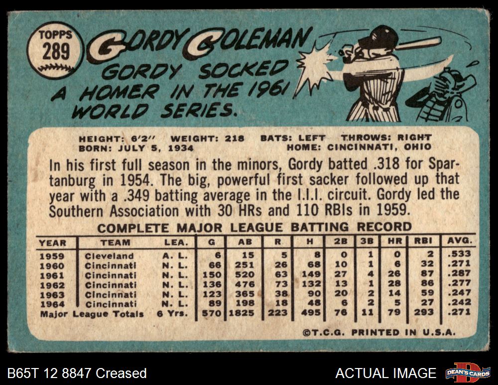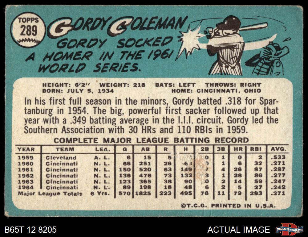 1965 Topps #289 Gordy Coleman