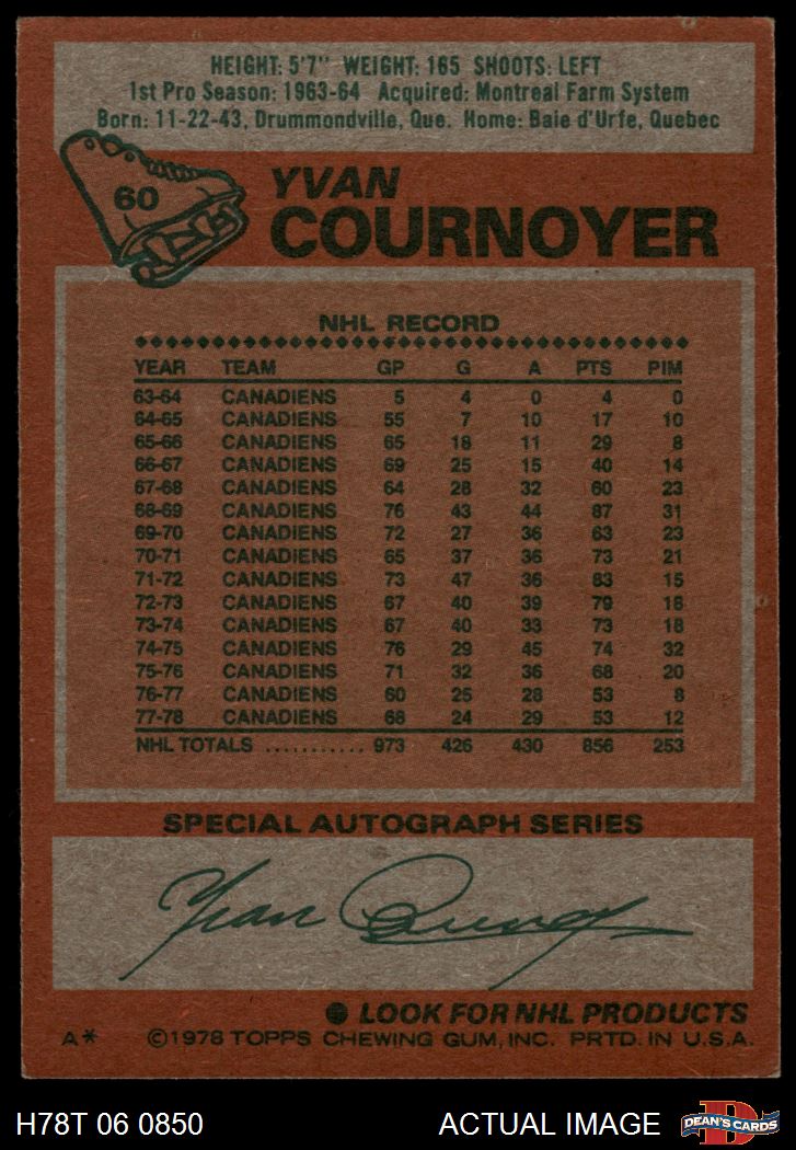 1978 Topps #60 Yvan Cournoyer 3 - VG