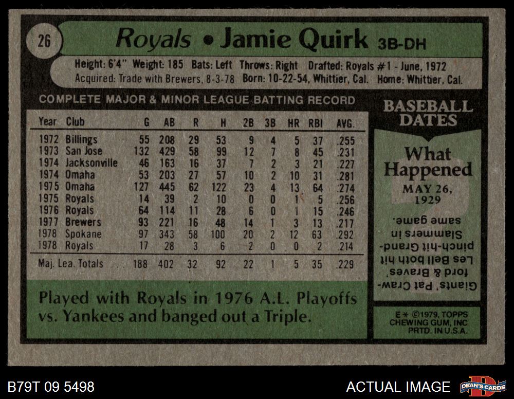 1979 Topps #26 Jamie Quirk 4 - VG/EX