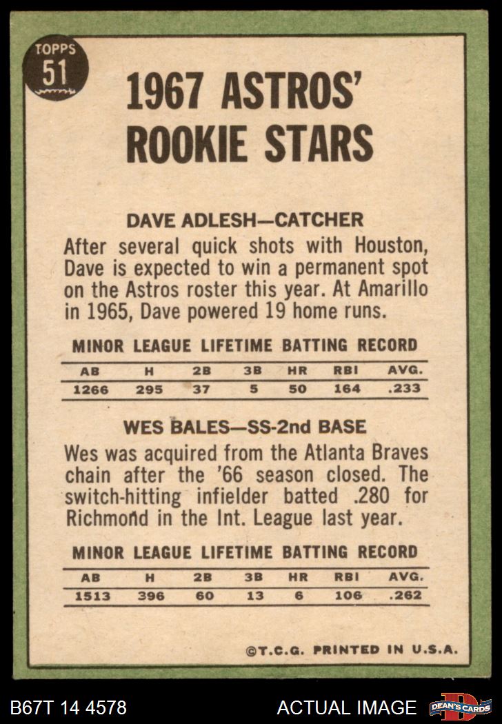 1967 Topps #51 - Dave Adlesh / Wes Bales Astros Rookies 1.5 - FAIR
