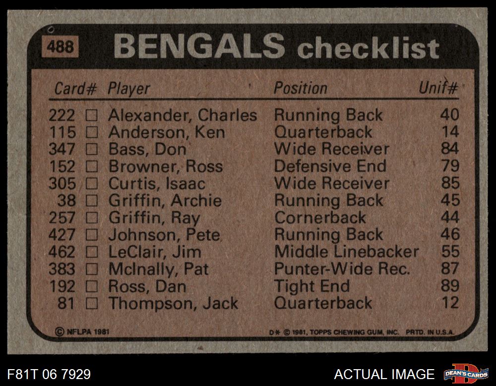 1981 Topps #488 - Pete Johnson / Dan Ross / Louis Breeden / Eddie Edwards Bengals Leaders & Checklist 7 - NM