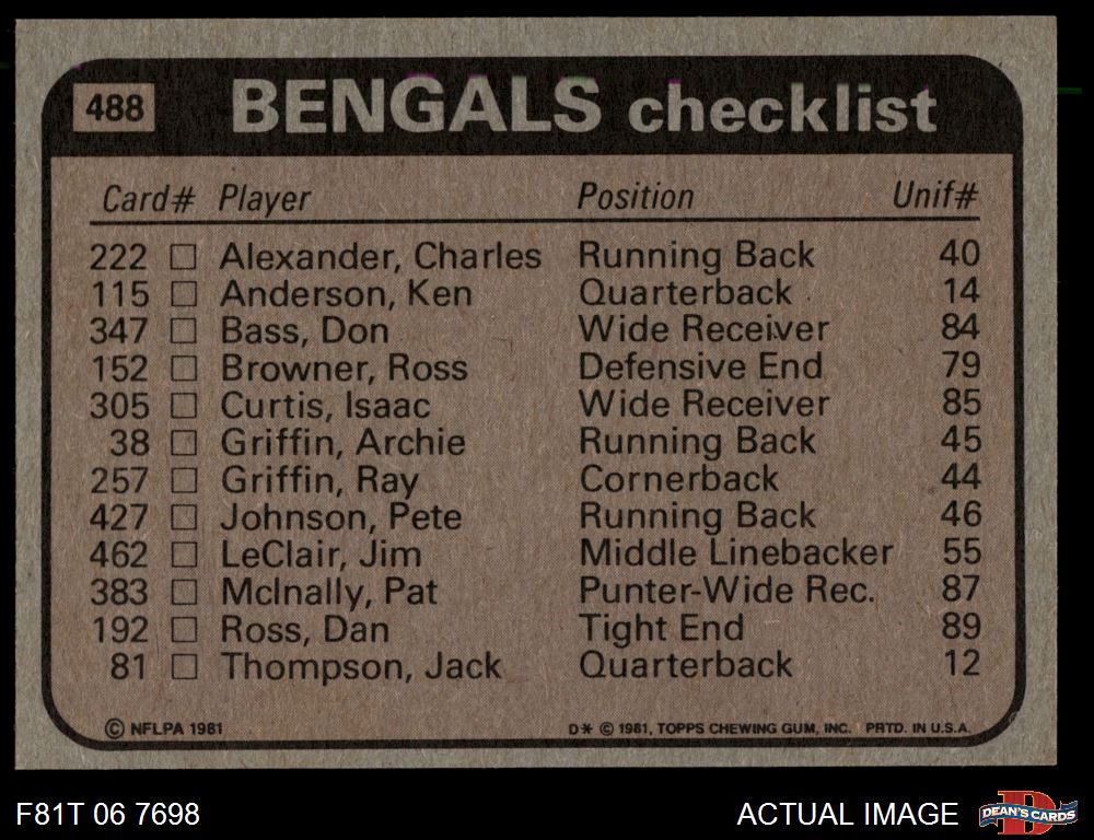 1981 Topps #488 - Pete Johnson / Dan Ross / Louis Breeden / Eddie Edwards Bengals Leaders & Checklist 8.5 - NM/MT+