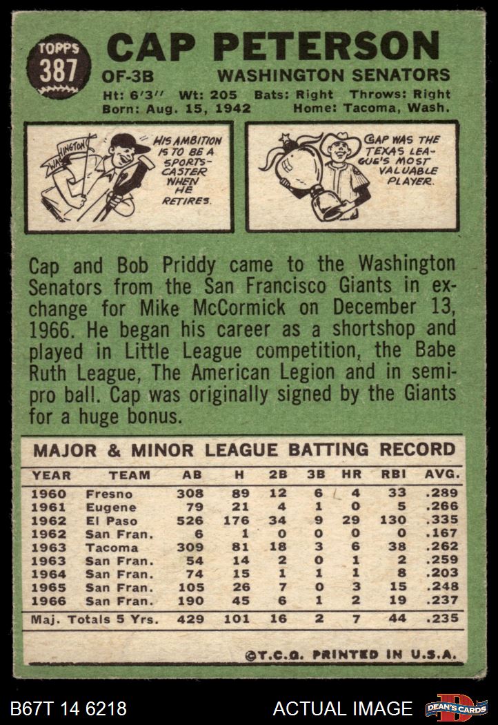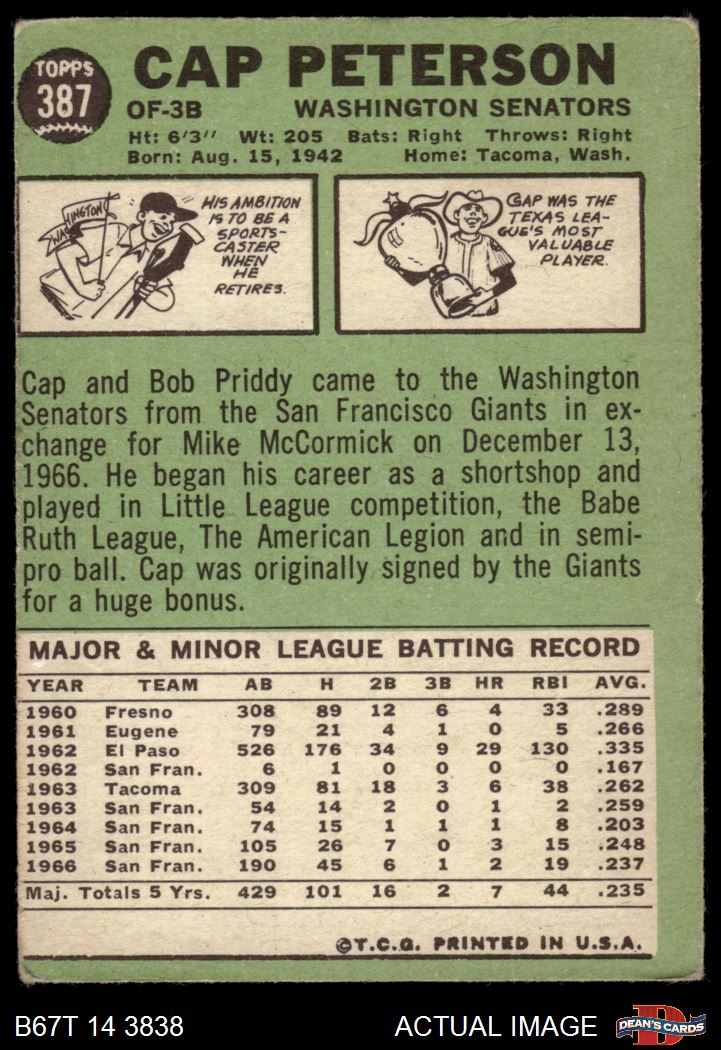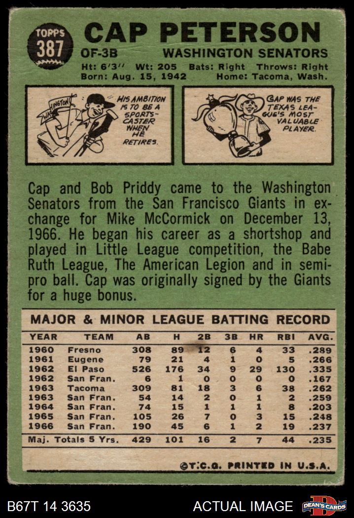 1967 Topps #387 Cap Peterson 1.5 - FAIR