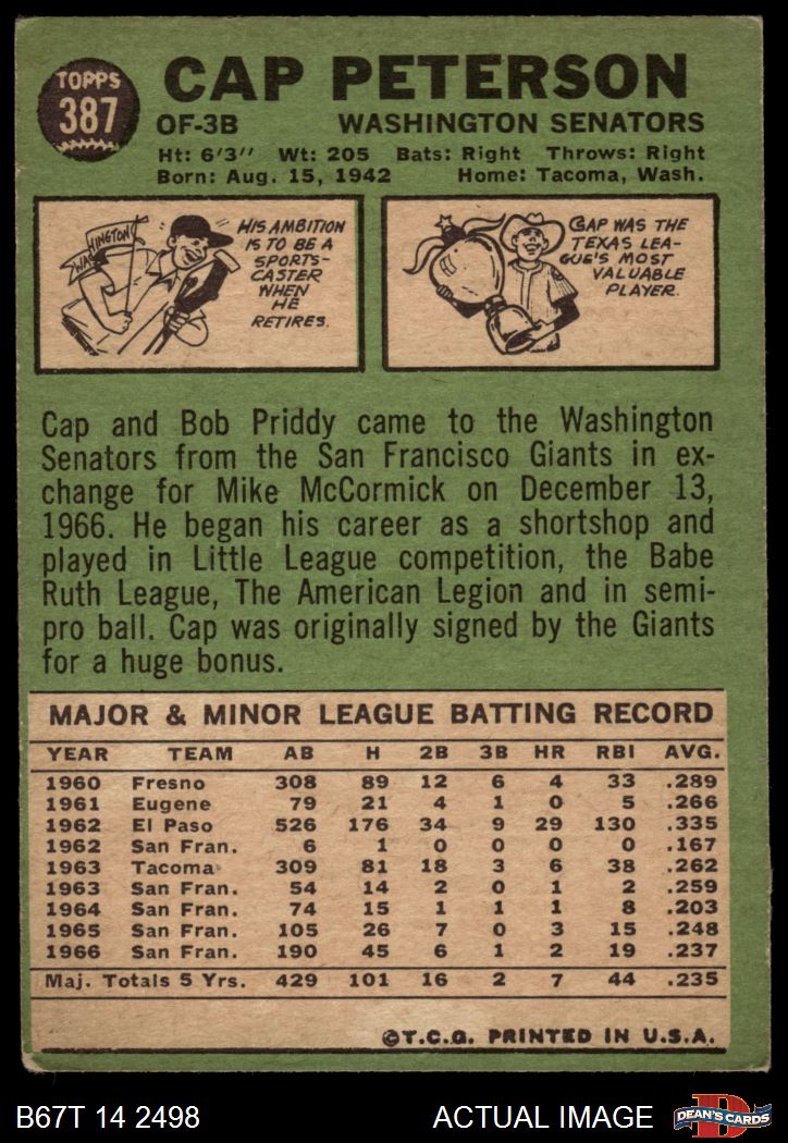 1967 Topps #387 Cap Peterson 2 - GOOD