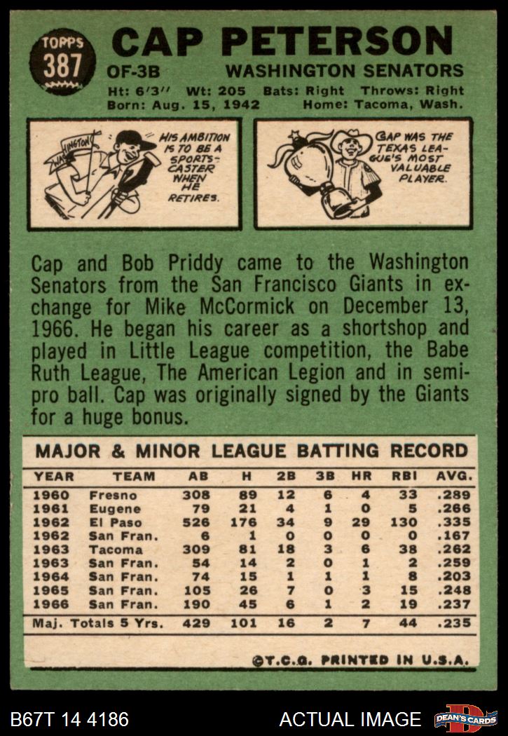 1967 Topps #387 Cap Peterson 5.5 - EX+