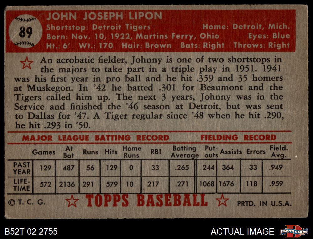 1952 Topps #89 John Lipon 1.5 - FAIR