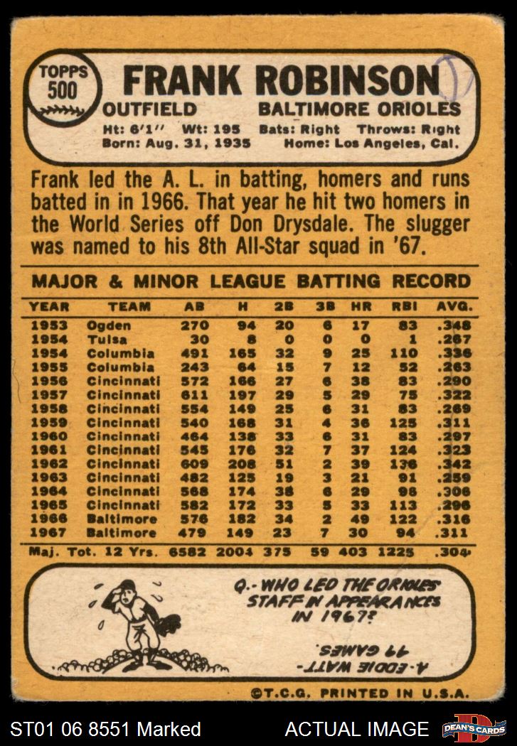 1968 Topps #500 Frank Robinson 1 - POOR