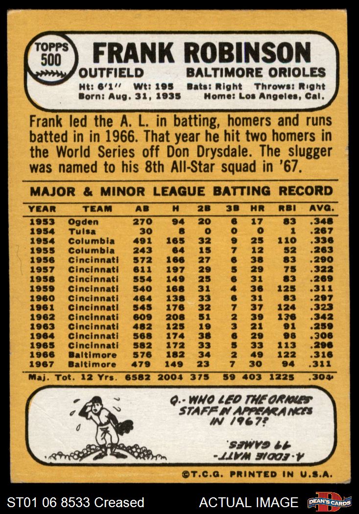 1968 Topps #500 Frank Robinson 3 - VG