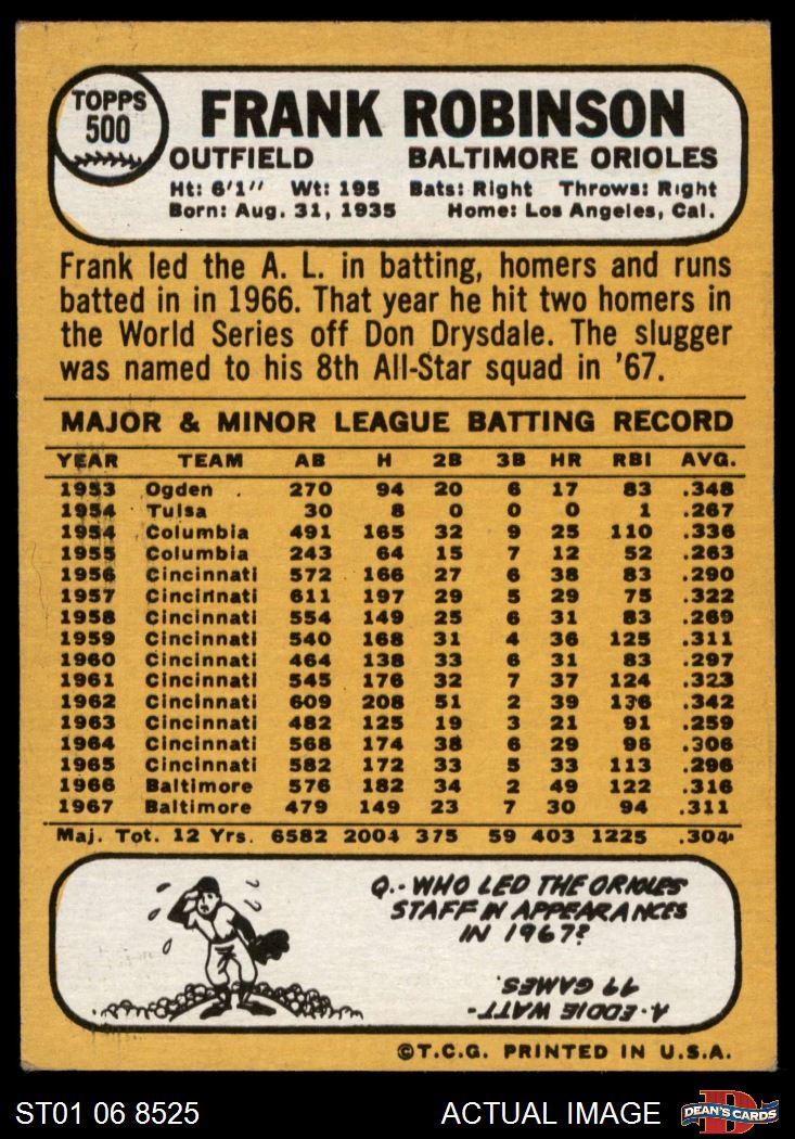 1968 Topps #500 Frank Robinson 5 - EX