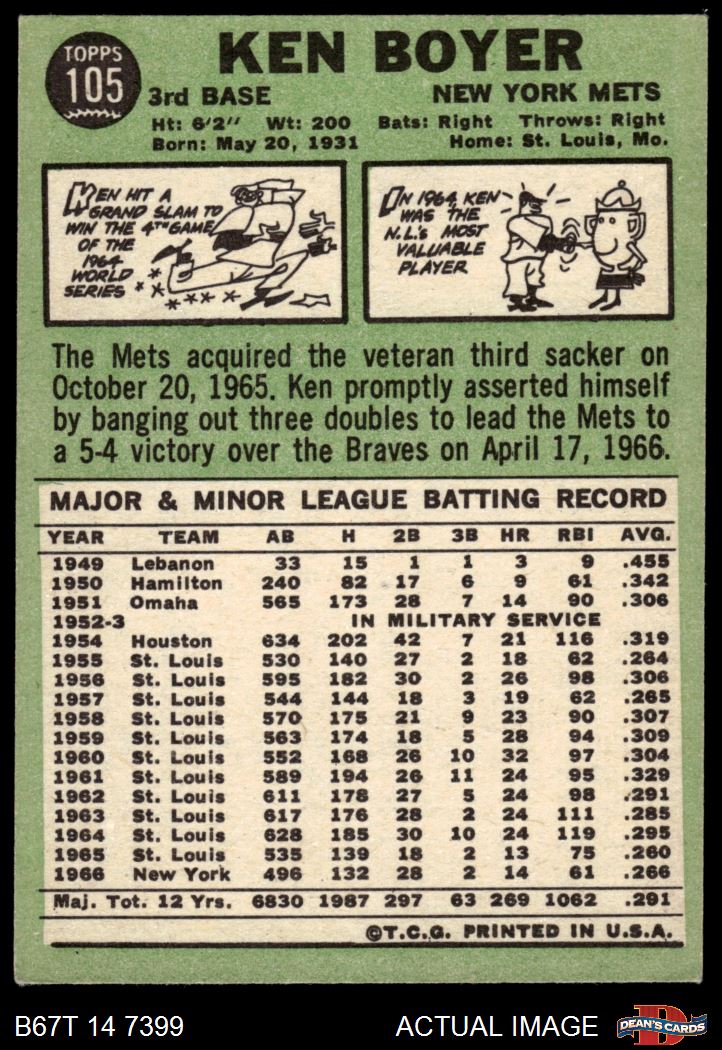 1967 Topps #105 Ken Boyer 5 - EX