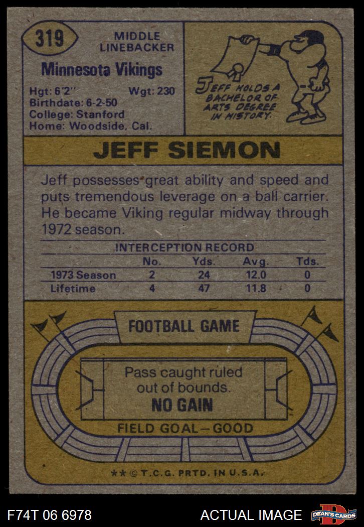 1974 Topps #319 Jeff Siemon 4 - VG/EX