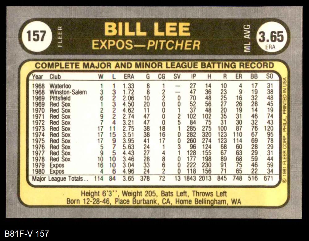 1981 Fleer #157 Bill Lee 8 - NM/MT