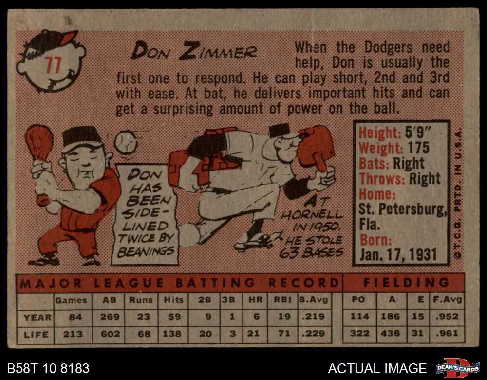 1958 Topps #77 WT Don Zimmer 1 - POOR