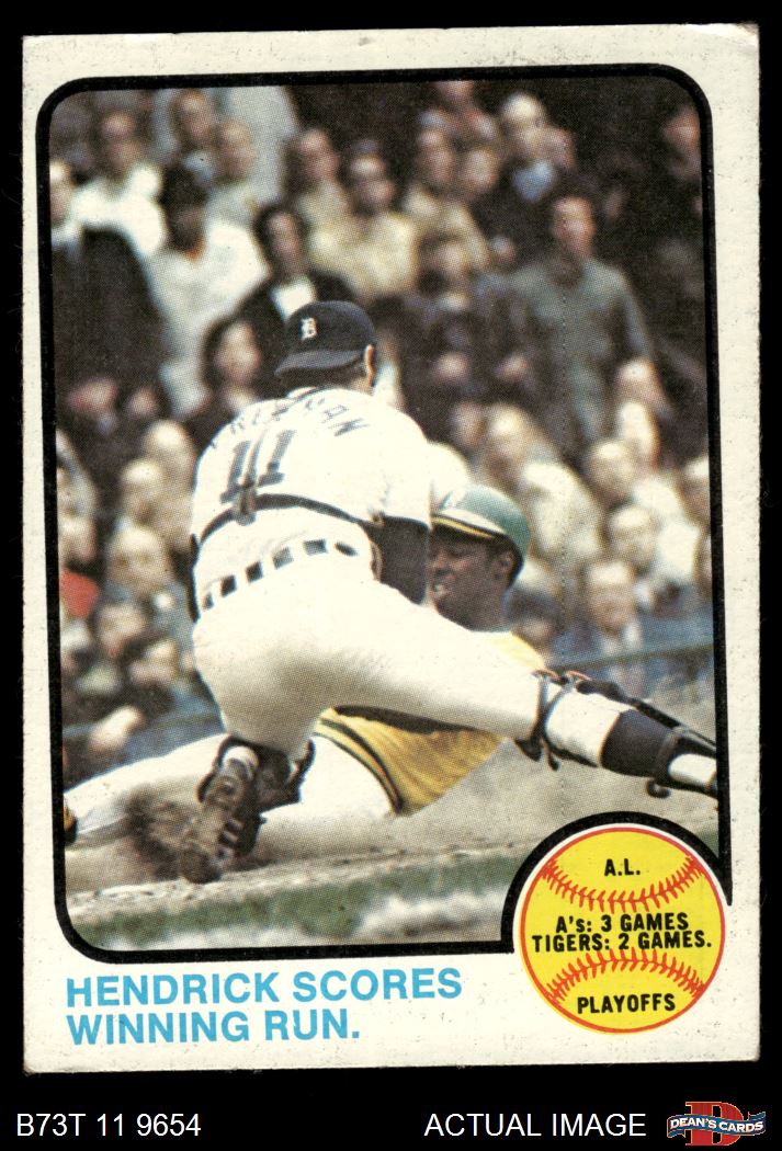 1973 Topps #201 - George Hendrick / Bill Freehan 1972 AL Playoffs - Hendrick Scores Winning Run 3 - VG