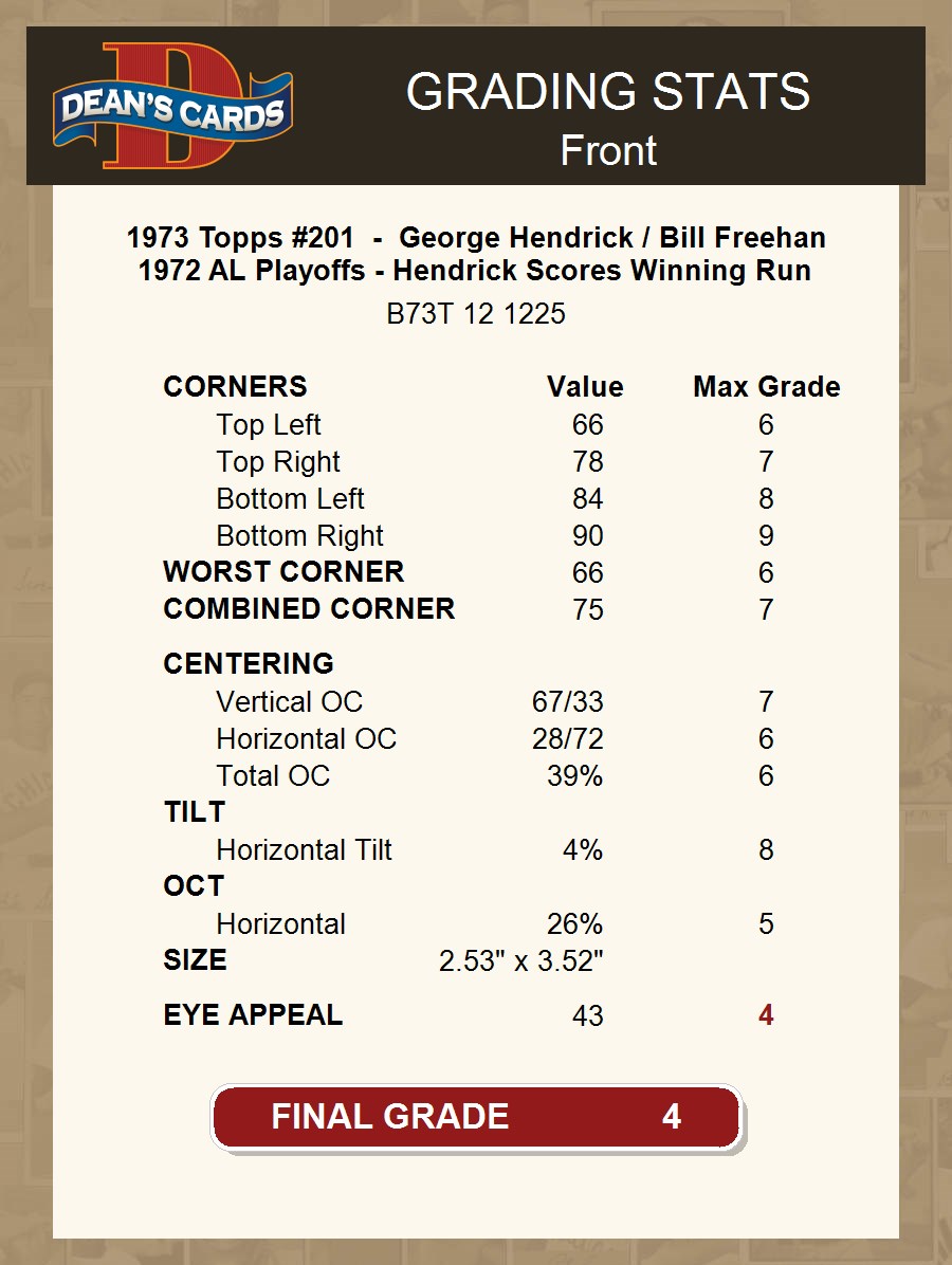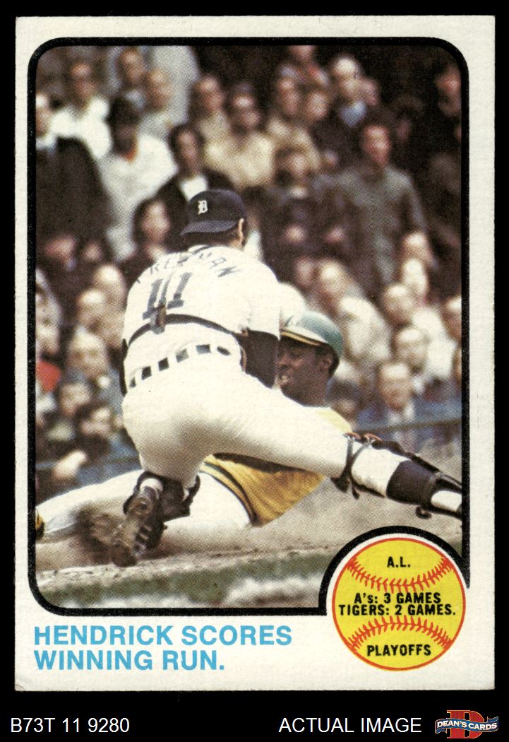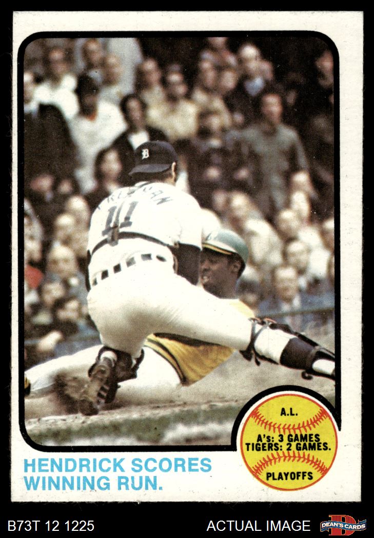 1973 Topps #201 - George Hendrick / Bill Freehan 1972 AL Playoffs - Hendrick Scores Winning Run 4 - VG/EX