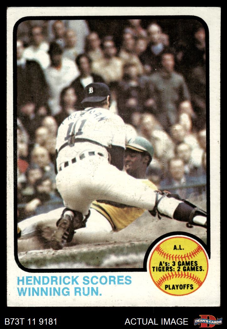 1973 Topps #201 - George Hendrick / Bill Freehan 1972 AL Playoffs - Hendrick Scores Winning Run 6 - EX/MT