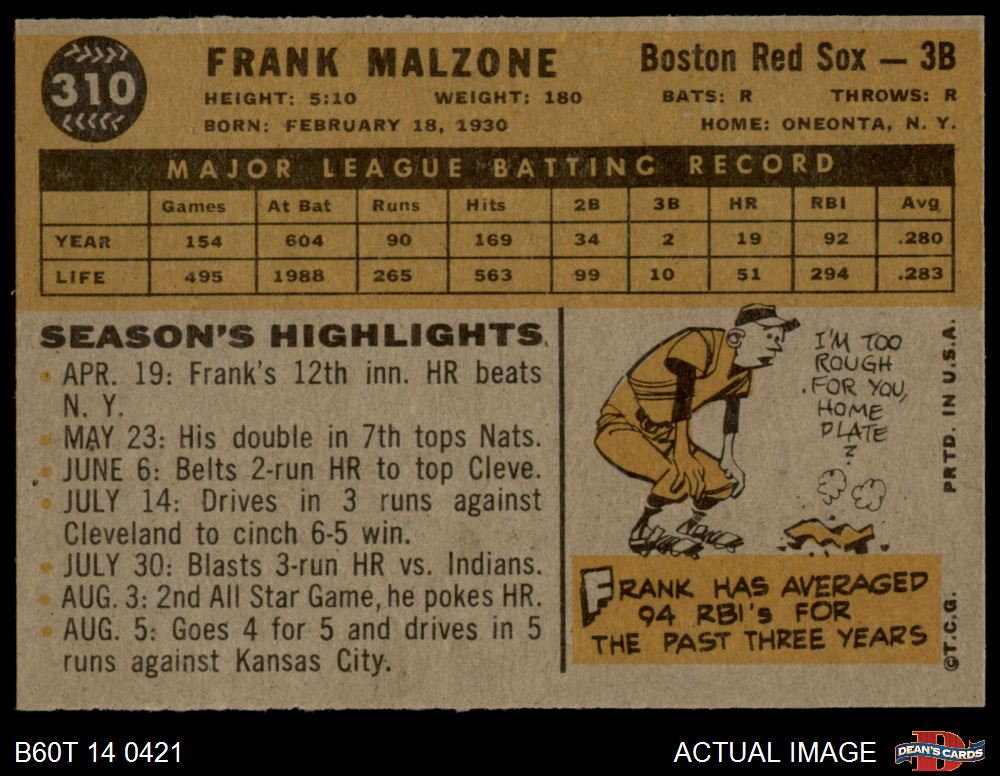 1960 Topps #310 Frank Malzone 4 - VG/EX
