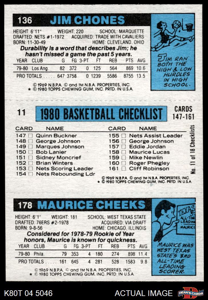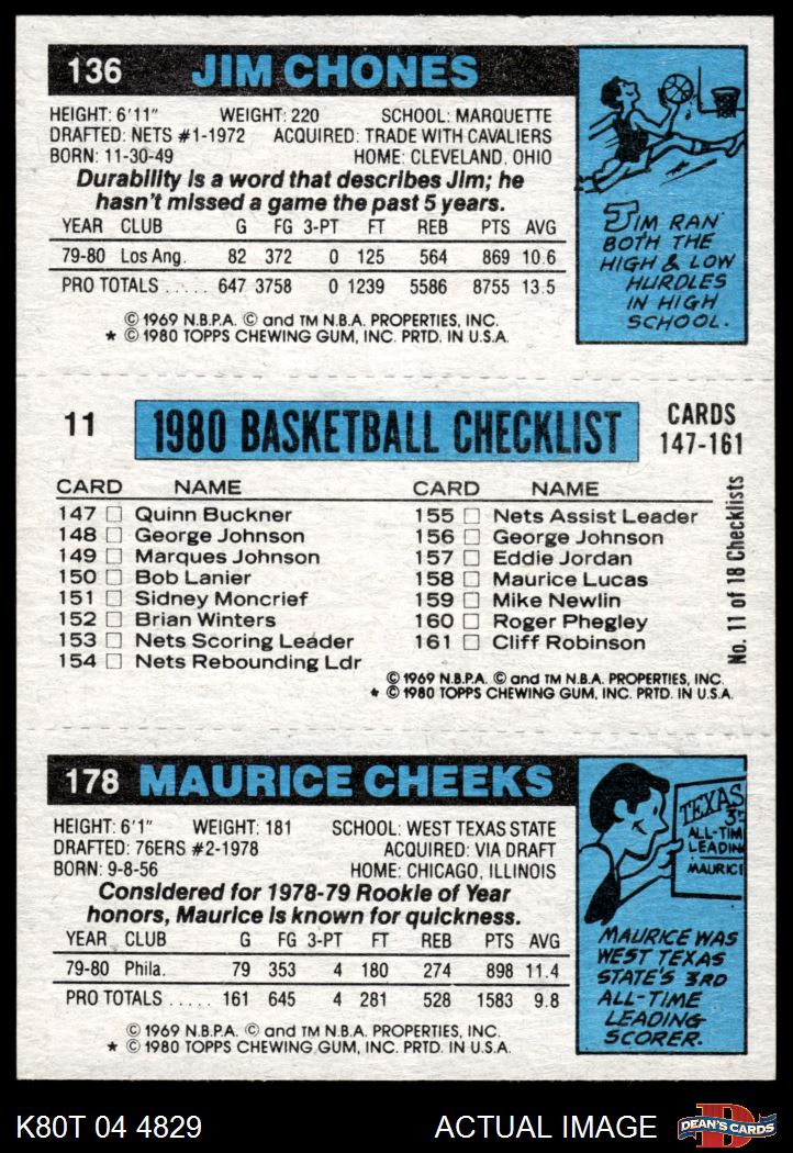 1980 Topps - Maurice Cheeks / George Gervin / Jim Chones 178 / 11 / 136 8 - NM/MT
