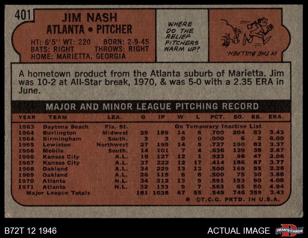 1972 Topps #401 Jim Nash 4 - VG/EX