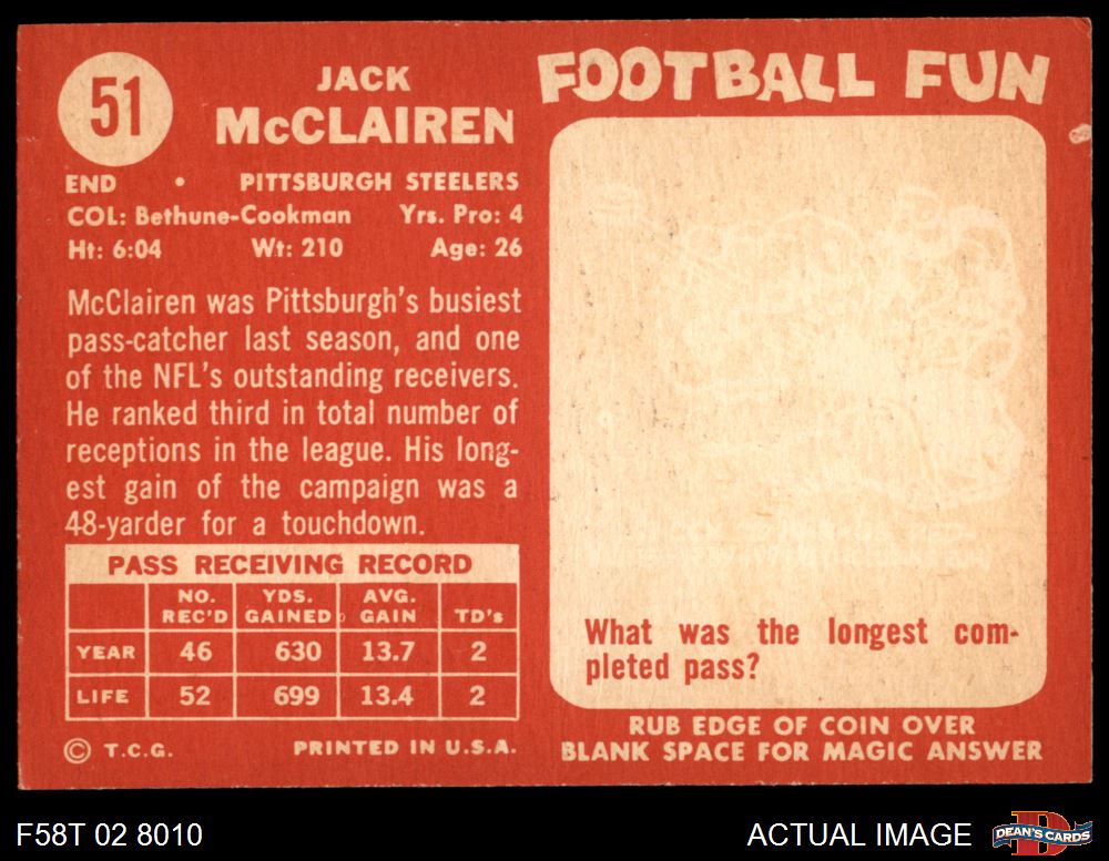 1958 Topps Football Cards (1,378 available)1958 Topps Steelers (137 available)