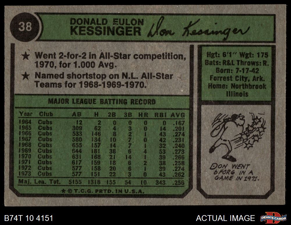 1974 Topps #38 Don Kessinger 5 - EX