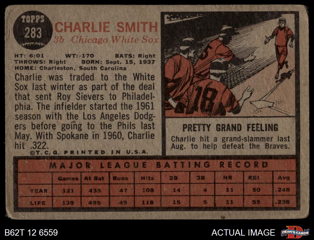 1962 Topps #283 Charlie Smith
