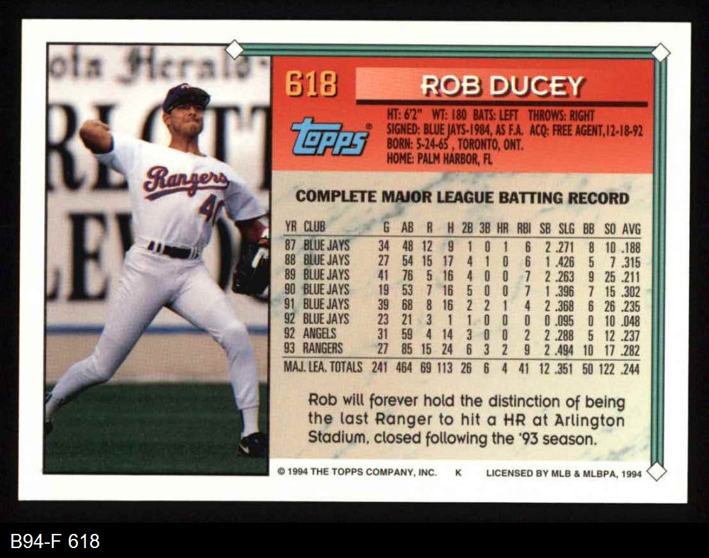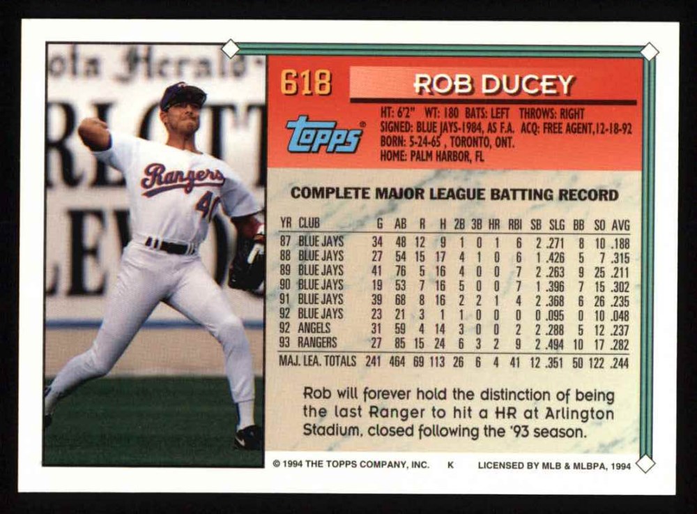 1994 Topps #618 Rob Ducey 8 - NM/MT