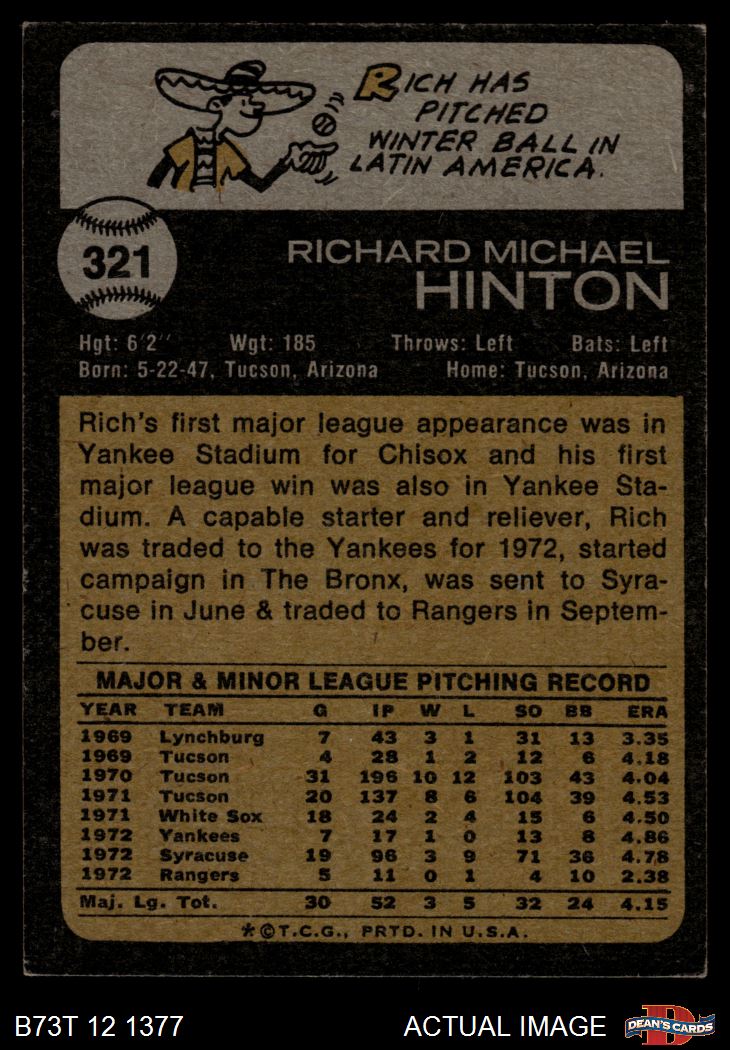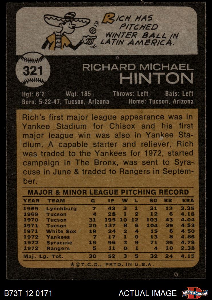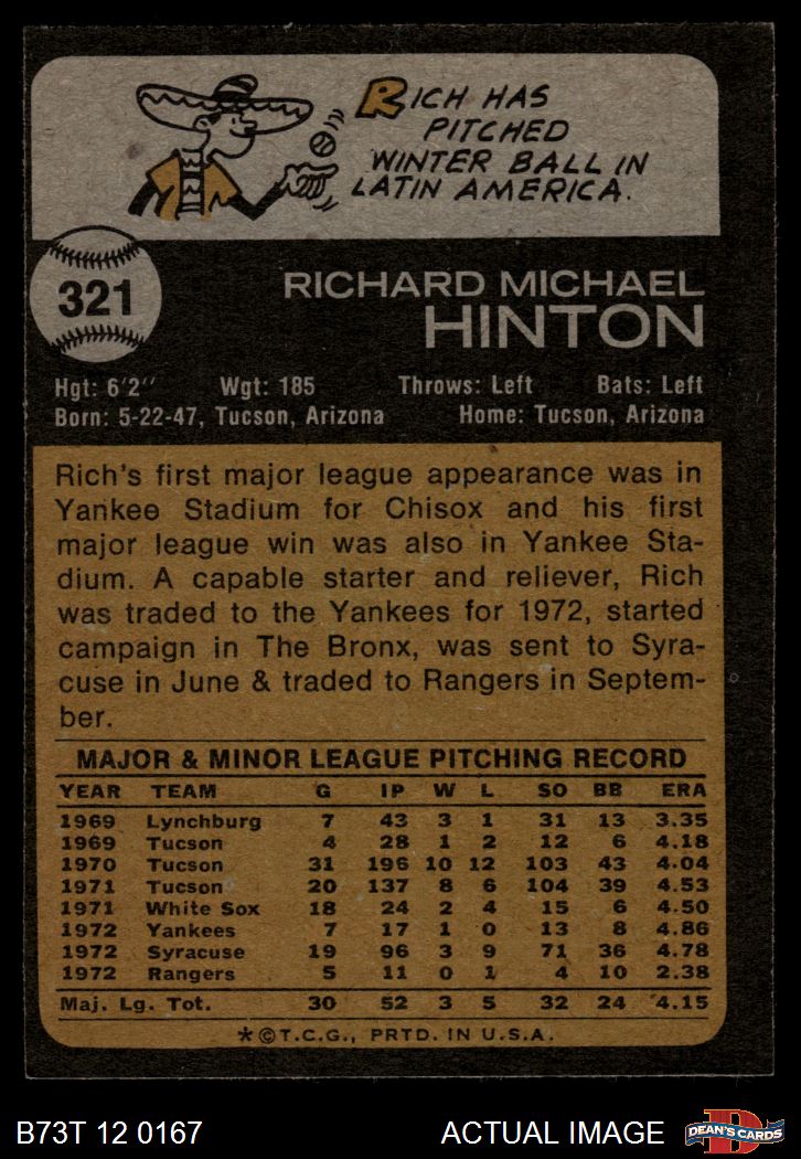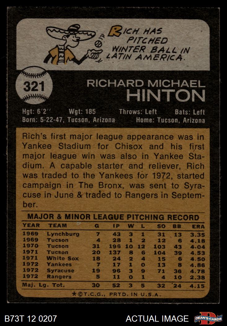 1973 Topps #321 Rich Hinton
