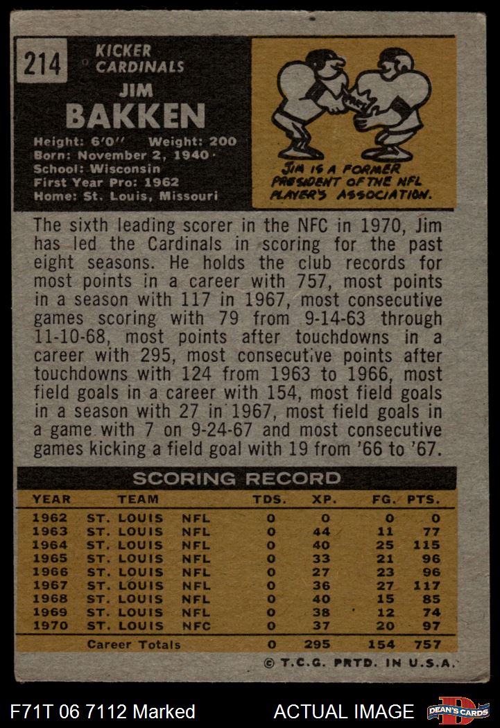 1971 Topps #214 Jim Bakken Front Thumbnail