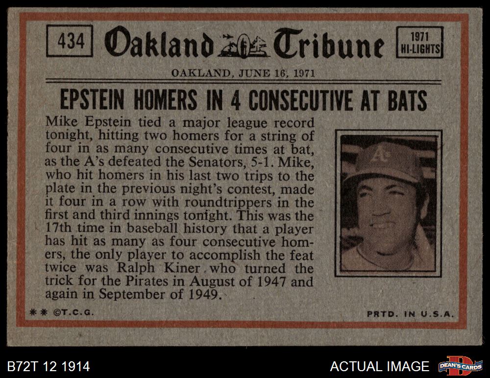 1972 Topps #434 - Johnny Bench In Action 3 - VG