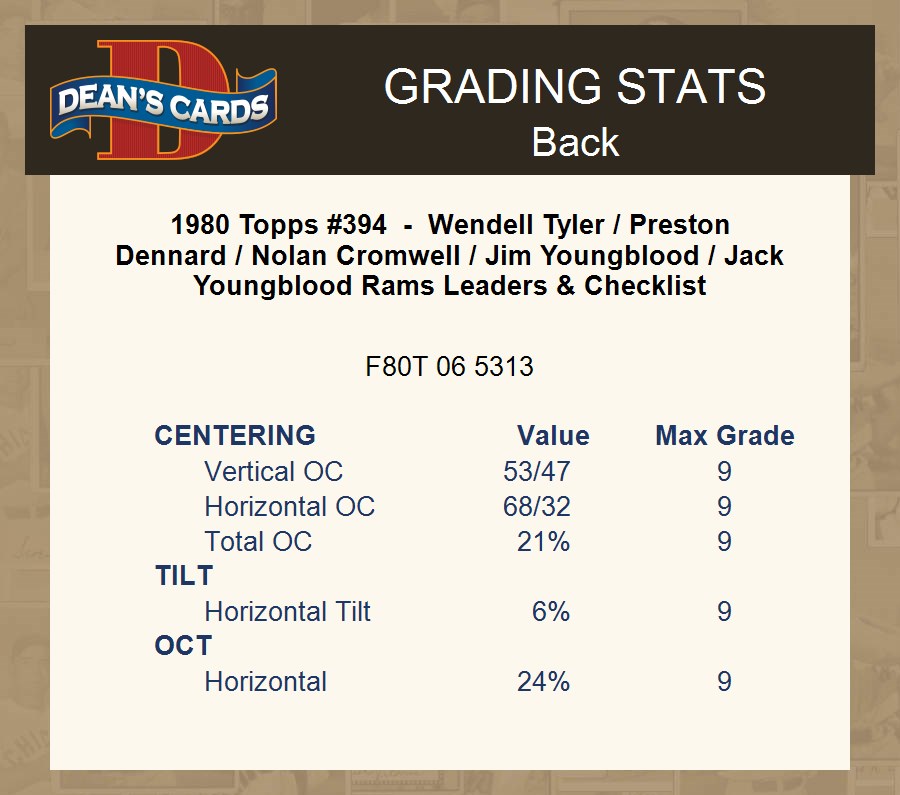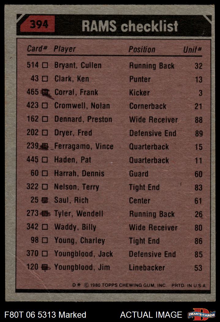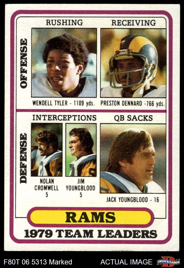 1980 Topps #394 - Wendell Tyler / Preston Dennard / Nolan Cromwell / Jim Youngblood / Jack Youngblood Rams Leaders & Checklist 1.5 - FAIR