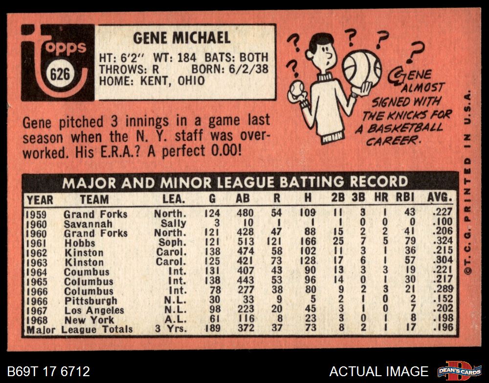 1969 Topps #626 Gene Michael