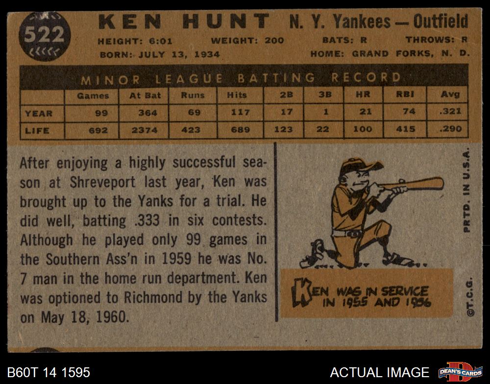 1960 Topps #522 Ken Hunt 2 - GOOD