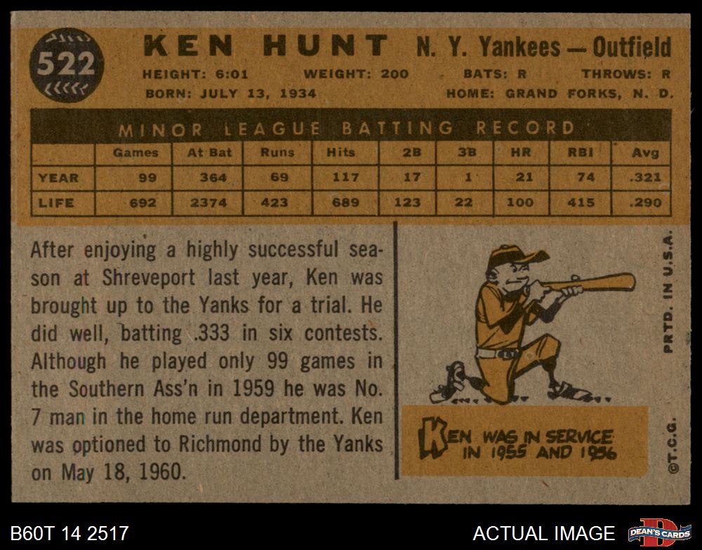 1960 Topps #522 Ken Hunt 6 - EX/MT