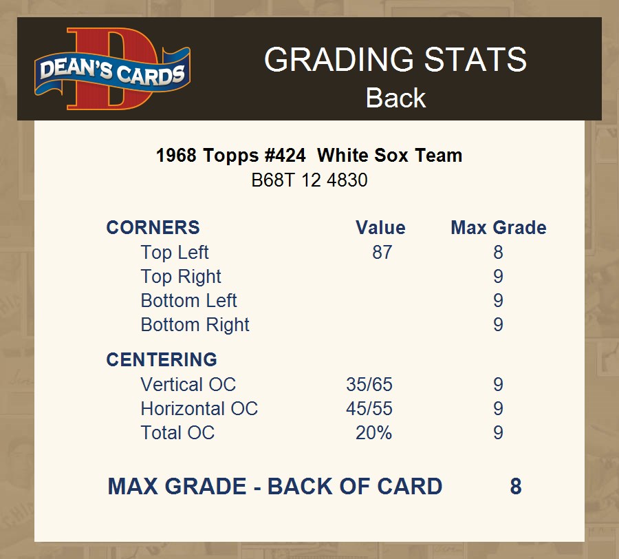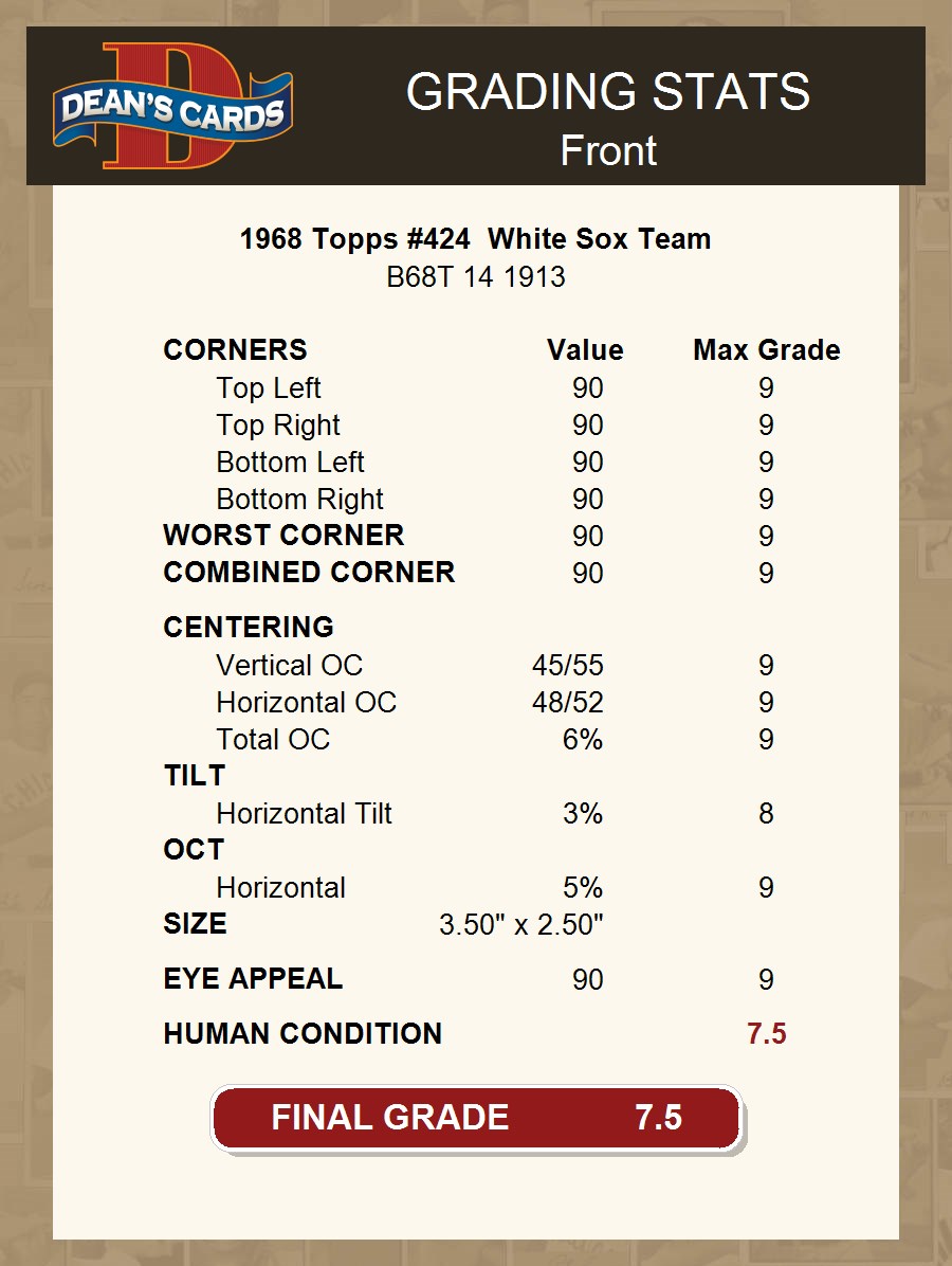 1968 Topps #424 White Sox Team 7.5 - NM+