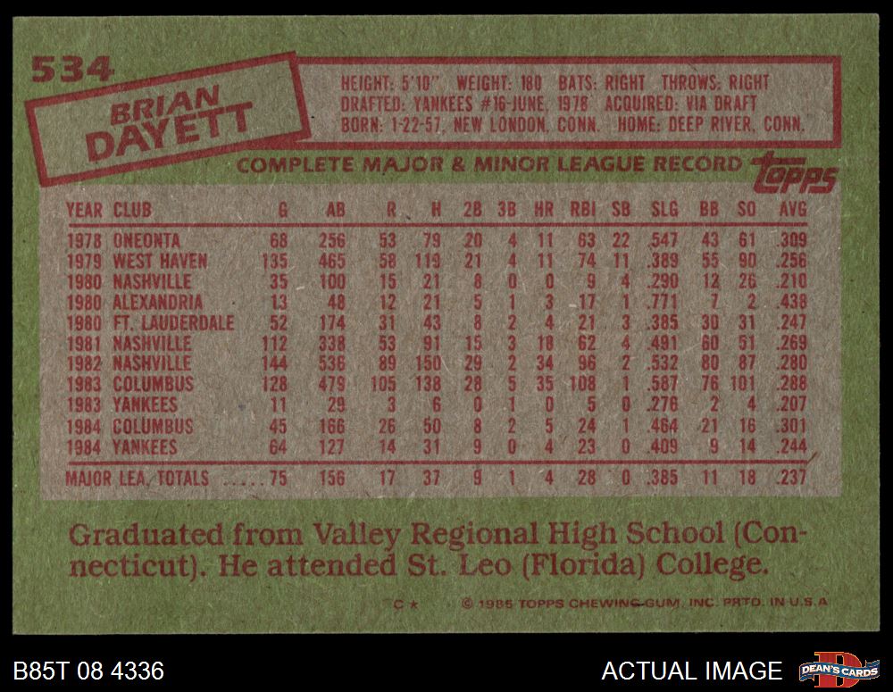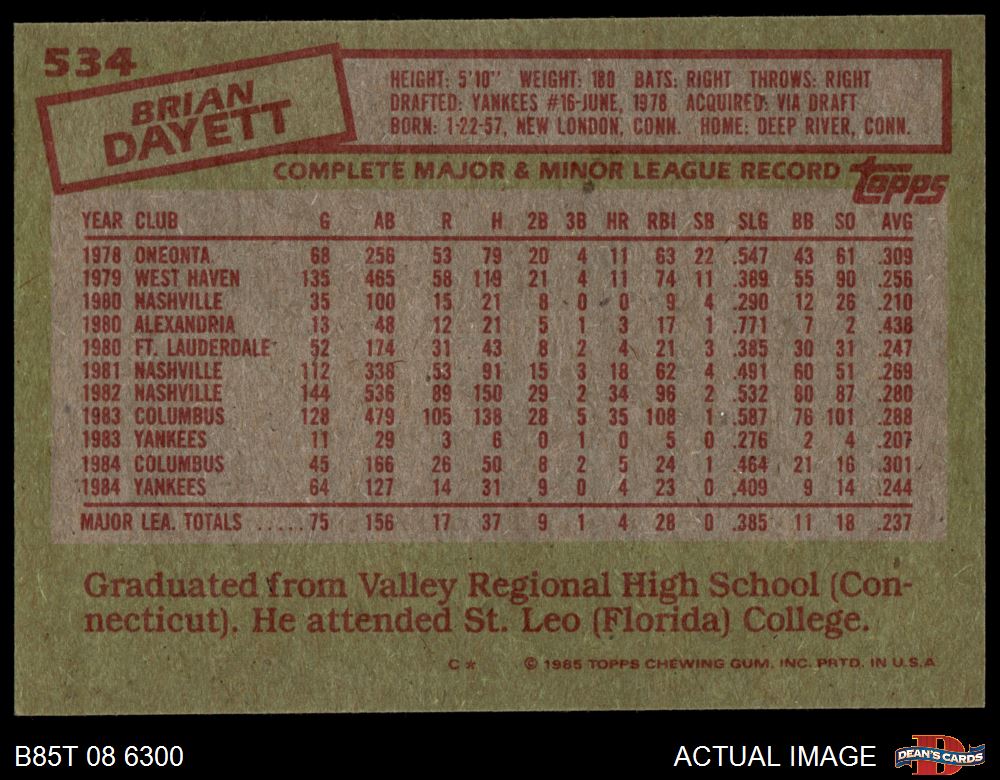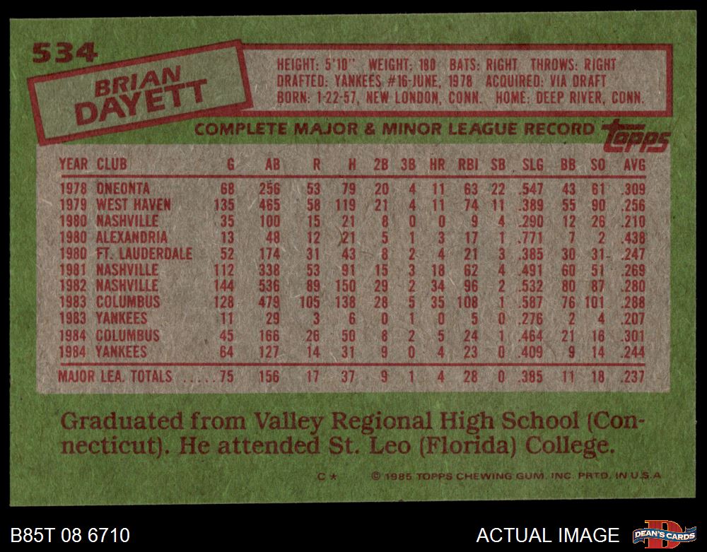 1985 Topps #534 Brian Dayett