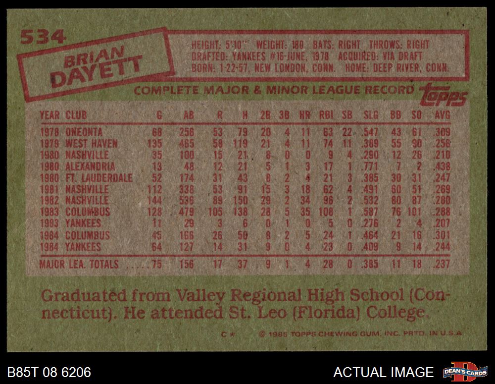 1985 Topps #534 Brian Dayett 8.5 - NM/MT+