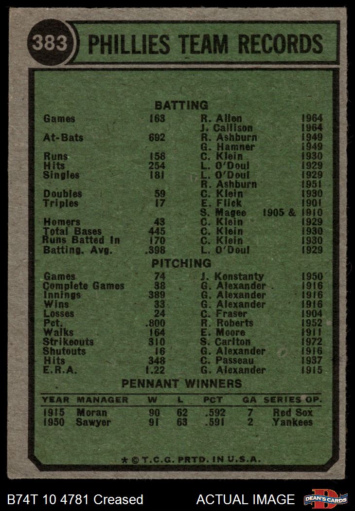 1974 Topps #383 Phillies Team 2 - GOOD