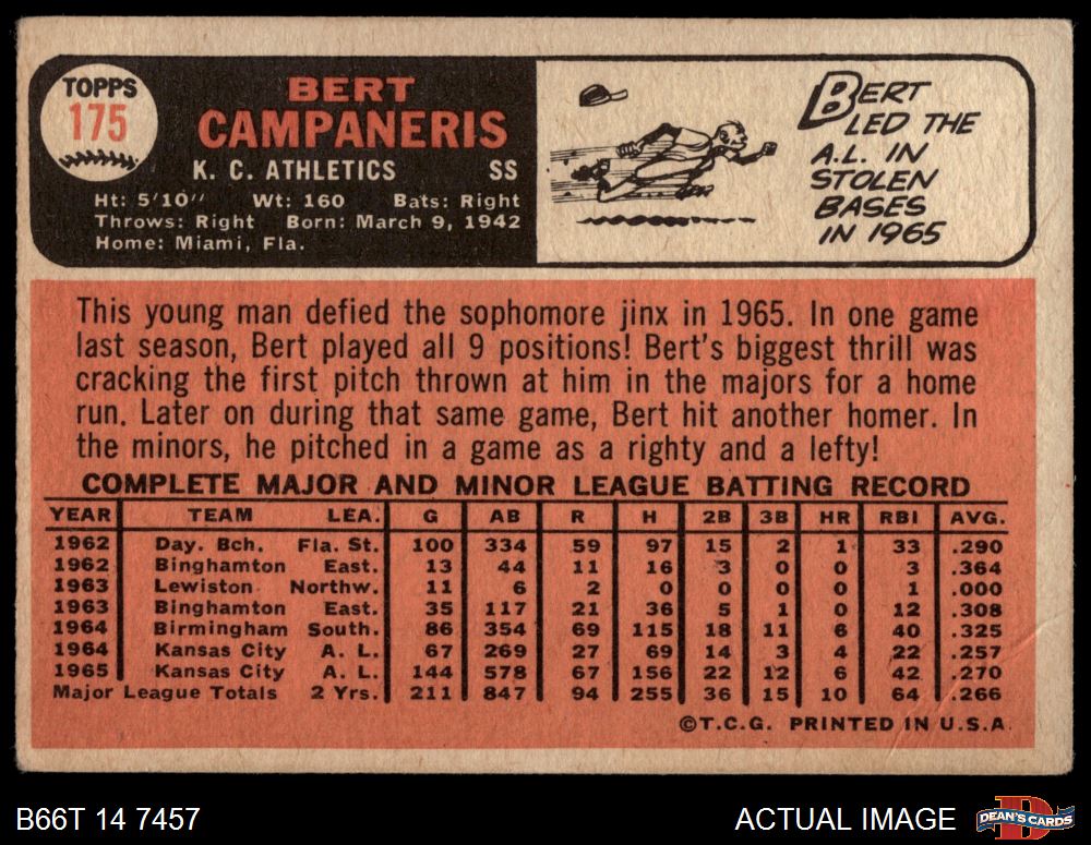 1966 Topps #175 Bert Campaneris Front Thumbnail