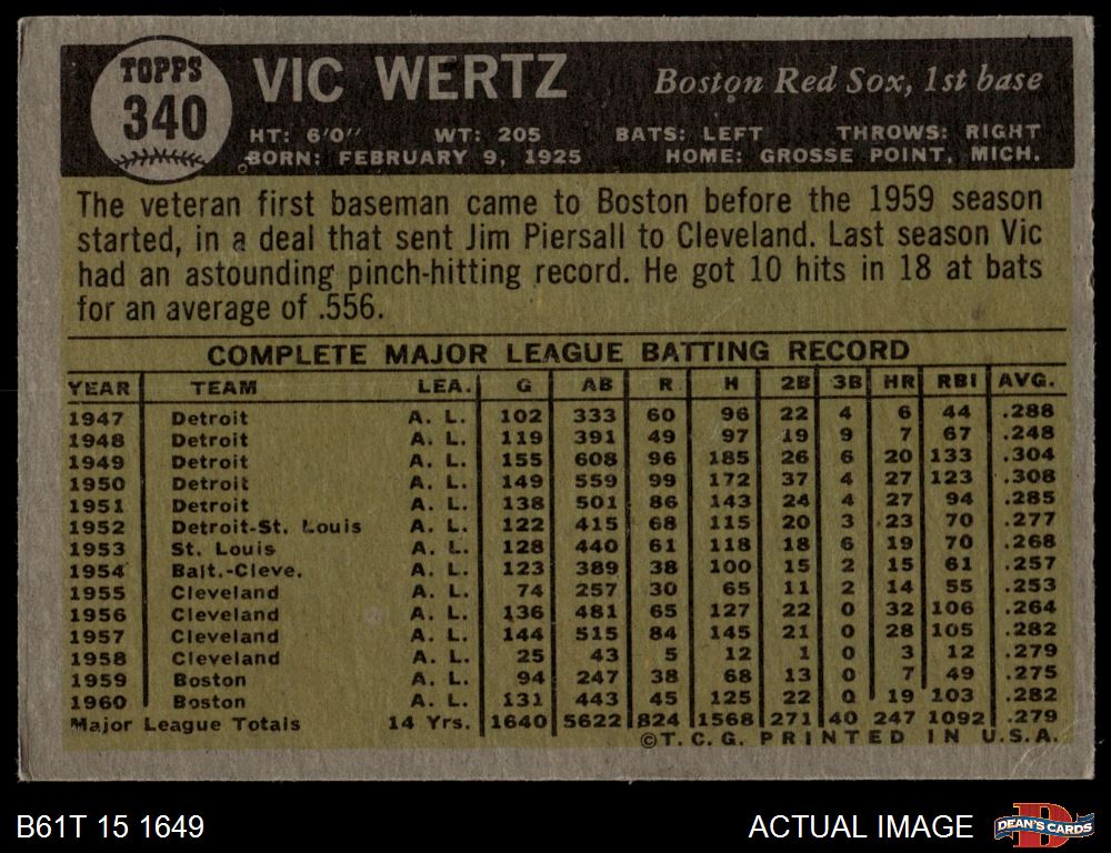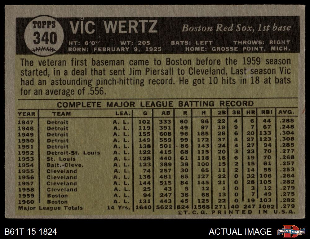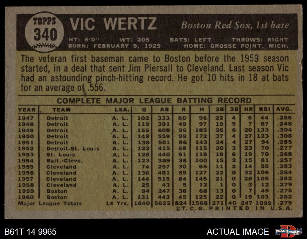 1961 Topps Baseball Cards (10,657 available)1961 Topps Red Sox (703 available)