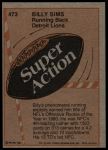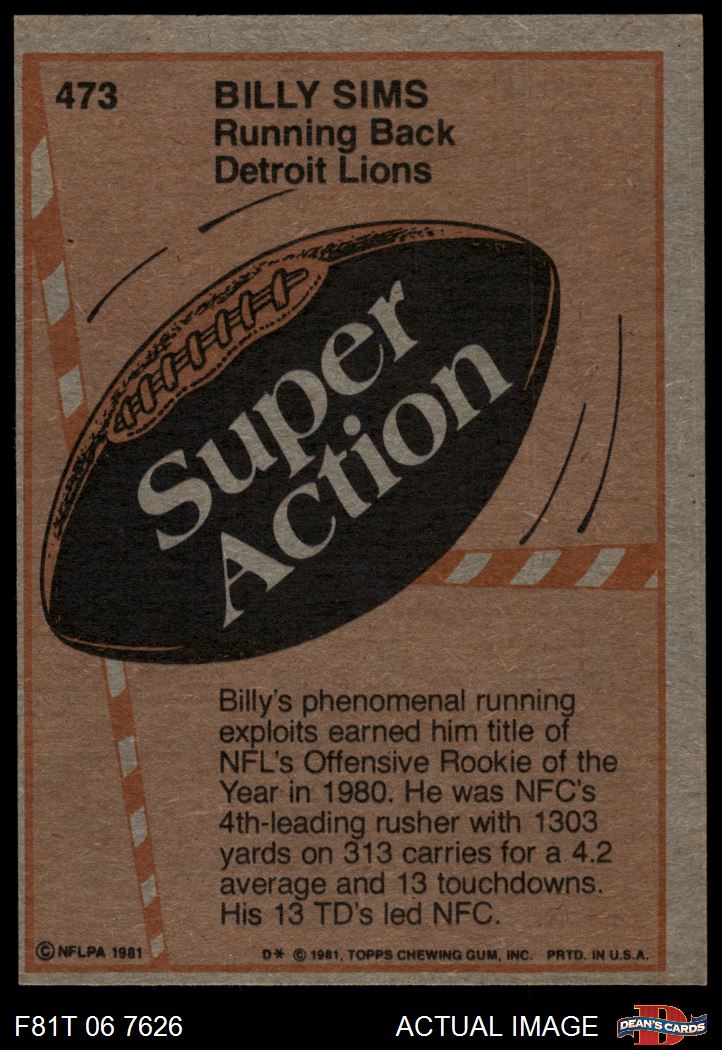 1981 Topps #473 - Billy Sims Super Action 6 - EX/MT