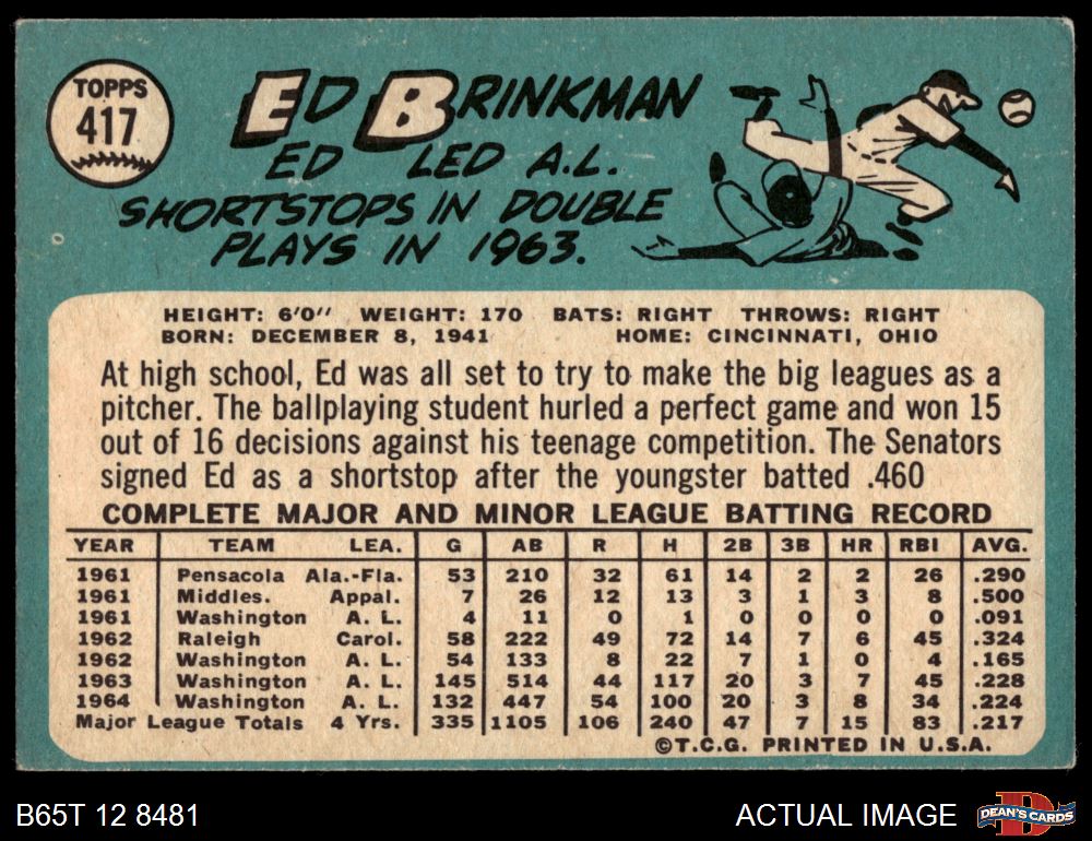 1965 Topps #417 Ed Brinkman 2 - GOOD