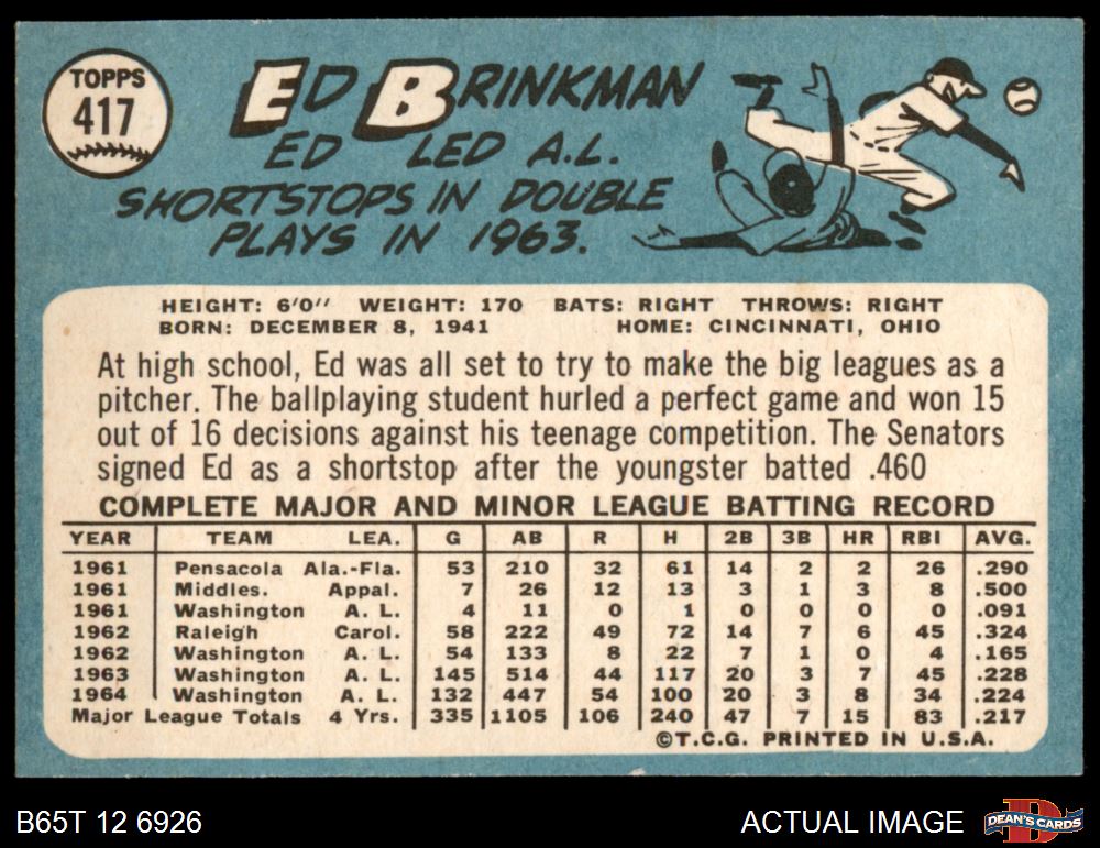 1965 Topps #417 Ed Brinkman 5 - EX