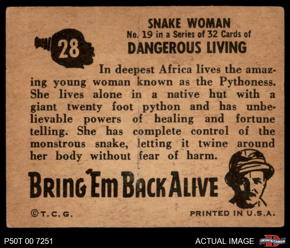 1950 Topps Bring Em Back Alive #28 Snake Woman