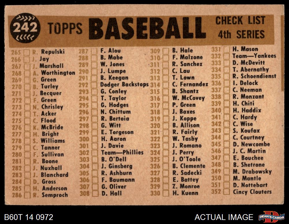 1960 Topps #242 Cardinals Team Checklist 2 - GOOD