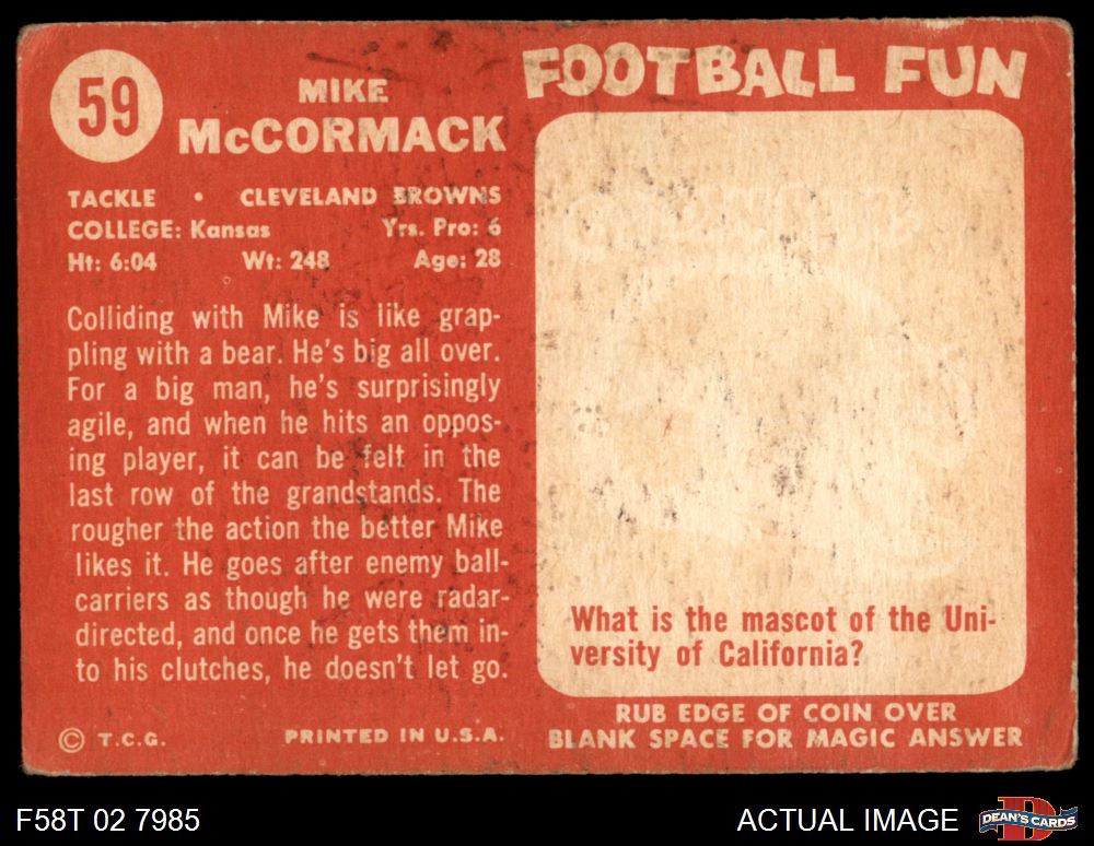1958 Topps #59 Mike McCormack 3.5 - VG+