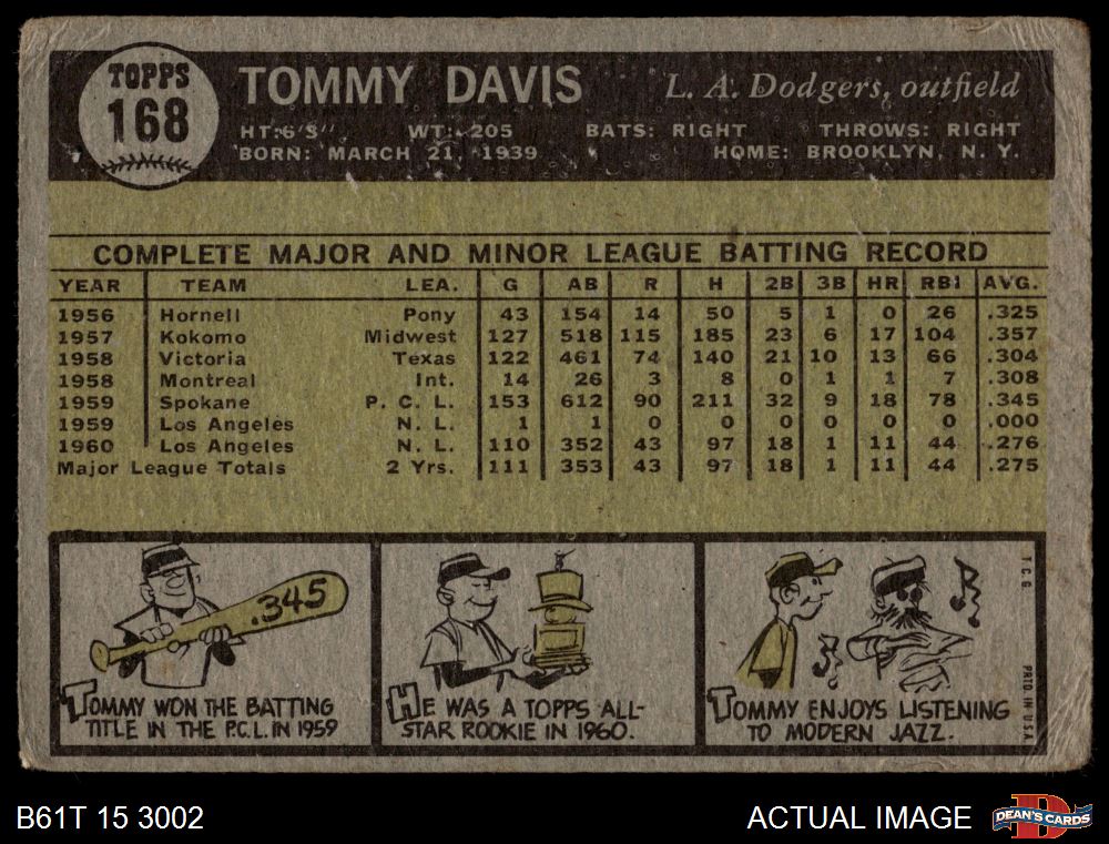 1961 Topps #168 Tommy Davis 1 - POOR