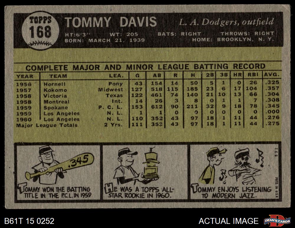 1961 Topps #168 Tommy Davis 3.5 - VG+