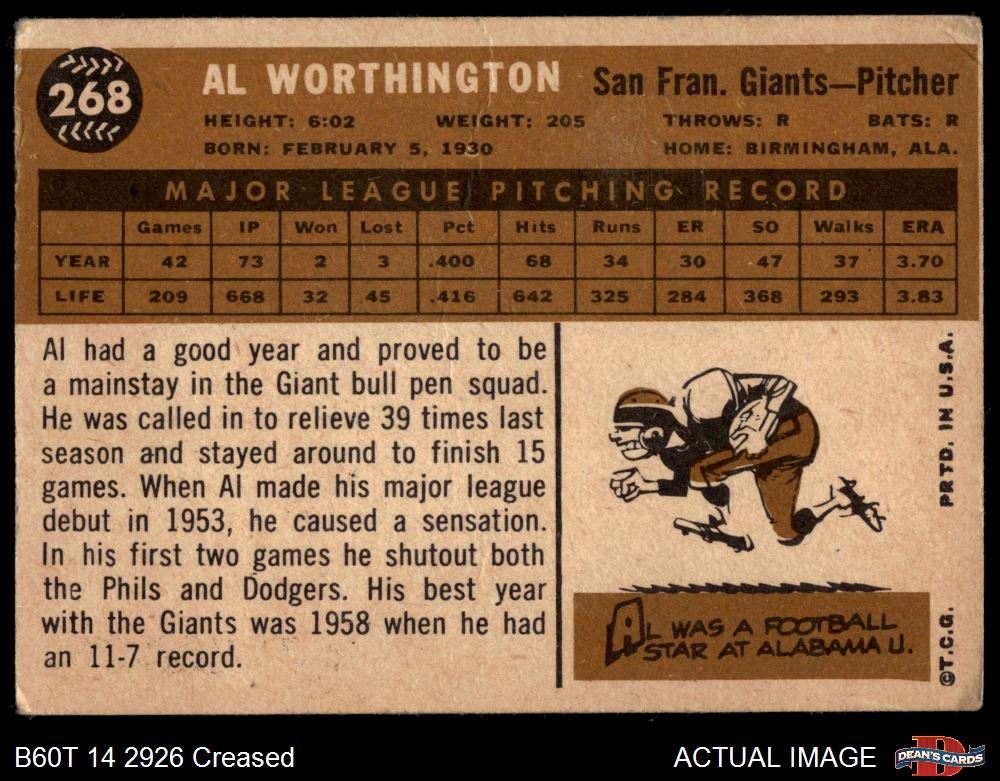 1960 Topps #268 Al Worthington