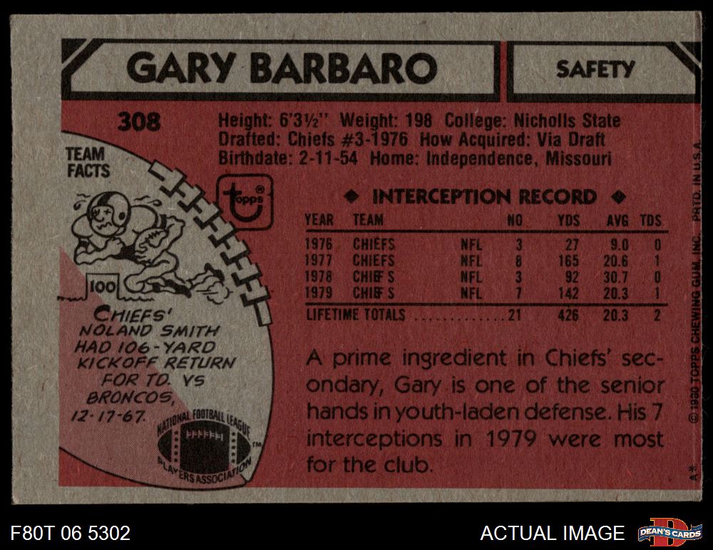 1980 Topps #308 Gary Barbaro 2 - GOOD